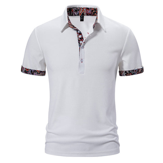 European Size Polo Shirt Men's Color Stitching Turnover Neck Short Sleeve